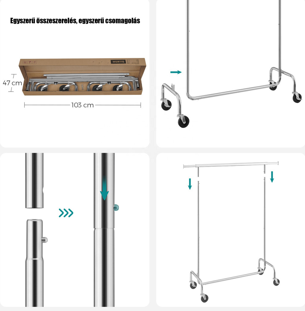 110cm Kihúzható Ruhatartó Sztender Fékezhető Kerekekkel