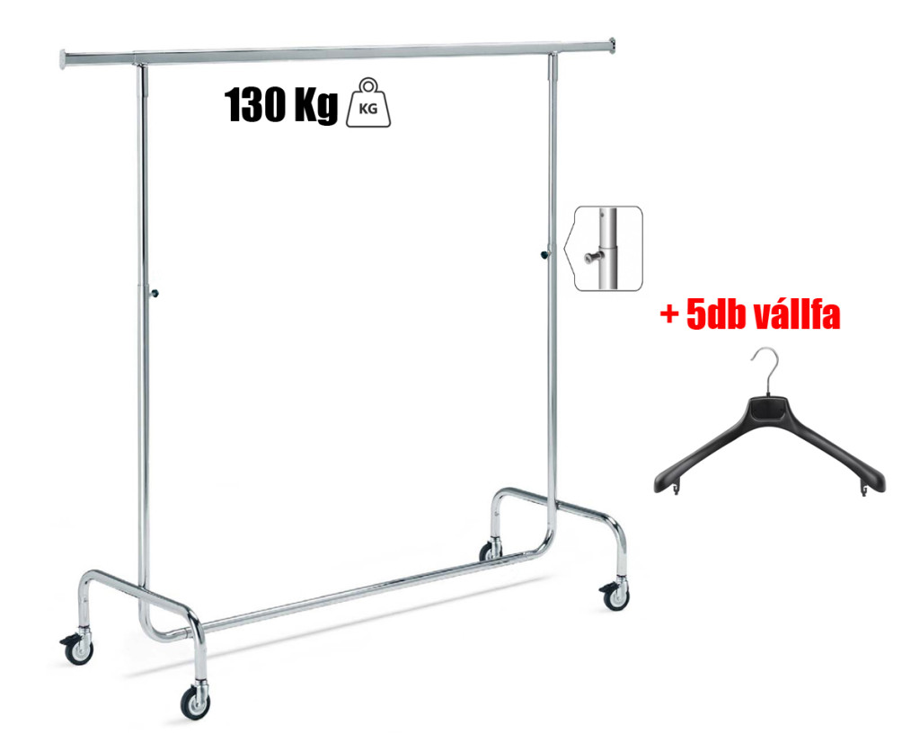 150cm SZÉLES KIHÚZHATÓ RUHA SZTENDER FÉKEZHETŐ 8CM IPARI GÖRGŐVEL, KLIPSZES MAGASSÁG ÁLLÍTÓVAL