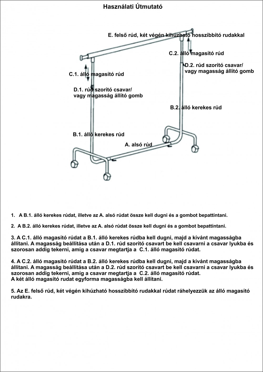 - MAGASSÁG: 125CM - 200 CM  A magasságállítás klipszekkel történik.